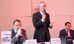 Orange s'associe à Sagem Communication et à Thomson afin de créer les prochains standards de communication entre les différents équipements numériques de la maison. «Notre ambition est de battre Microsoft, n'hésite pas à dire en souriant Georges Penalver, directeur du marketing stratégique et des Orange Labs, pour le groupe France Telecom. L'association prend la forme d'une société baptisée Soft At Home, détenue à 60% par France Telecom, 20% pour Sagem et 20% pour Thomson. Cette société établira les standards de communication entre les différents équipements numériques : passerelle haut débit, décodeur TV, TV, caméra, appareil photo, cadre photo numérique, téléphone, mobile, chaîne Hifi, etc ... Par exemple, il sera possible de prendre une photo de ses enfants sur la plage, et qu'elle soit transmise de façon transparente jusque dans le cadre photo électronique de leur grand-mère à des centaines de kilomètres de là. La passerelle haut débit devient l'élément central La société Soft at Home emploiera de soixante dix à quatre vingt personnes. La passerelle haut débit domestique va devenir l'élément central de communication de la maison, en intégrant de nouveaux services. " Notre objectif est de faire en sorte que les développements que nous devons réaliser en tant qu'opérateur ne soient pas répétés par vingt équipes de développement de par le monde, ce qui serait un gâchis, résume Georges Penalver. D'autres opérateurs et industriels sont donc les bienvenus pour ce qui doit devenir un standard de fait. "Cet accord n'est pas une simple manifestation franco-française comme le Minitel, elle réunit le numéro 1 mondial des passerelles et le numéro 1 mondial des décodeurs IP avec l'opérateur qui gère le plus grand parc homogène de passerelles haut débit au monde (LiveBox), insiste Georges Penalver. Une plate-forme Open Source Orange est en discussion avec des opérateurs en Chine, en Amérique du Nord et en Europe du Nord. La première plate-forme logicielle devrait être fournie avant la fin de 2008, avant que les premiers effets de la standardisation ne se fassent sentir en 2009, pour un réel décollage en 2010. Cette plate-forme reprend le logiciel actuel de la LiveBox, et utilisera des briques logicielles en Open Source sur un socle Linux. Côté standards de communication, il ne s'agit pas de réinventer ce qui existe déjà. Le protocole SIP (Session Initiation Protocol) constituera donc un élément indispensable. Dans ce cadre, le protocole UMA exploité par Orange ne constitue qu'une étape. Le logiciel sera vendu sous forme de licence aux opérateurs et aux industriels. François Josserand, anciennement chez Thomson, a été nommé PDG de Soft at Home. Photo : l'annonce de la création de la société Soft At Home. Avec de gauche à droite : Patrick Sevian, PDG de Sagem Communications, Georges Penalver, directeur du marketing stratégique de France Telcom, et Bruno Fabre, directeur des ventes et du marketing, du groupe Thomson, division Systèmes.